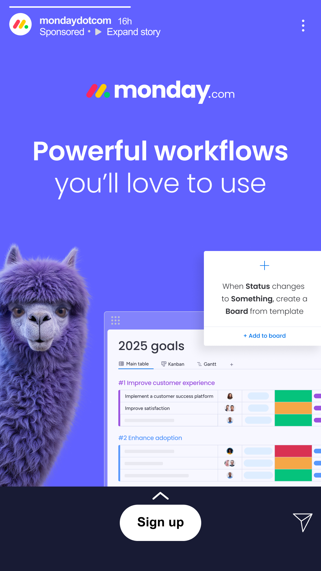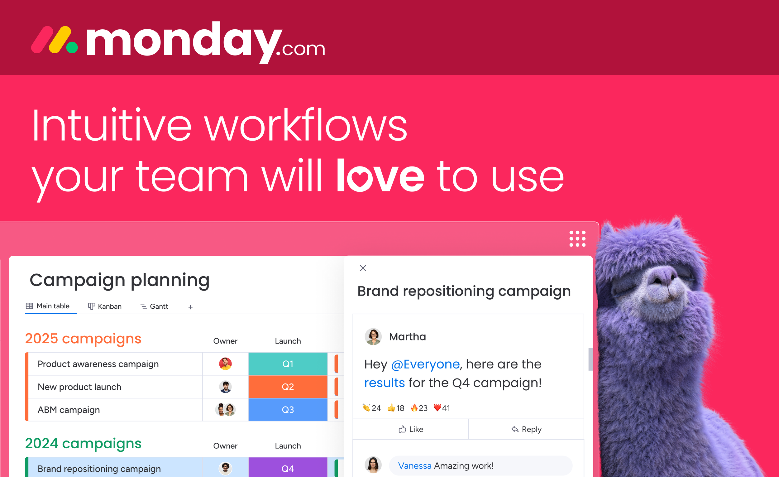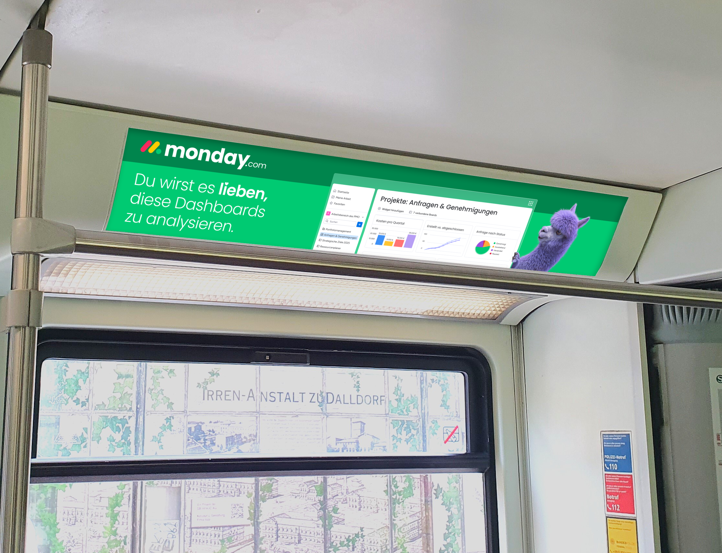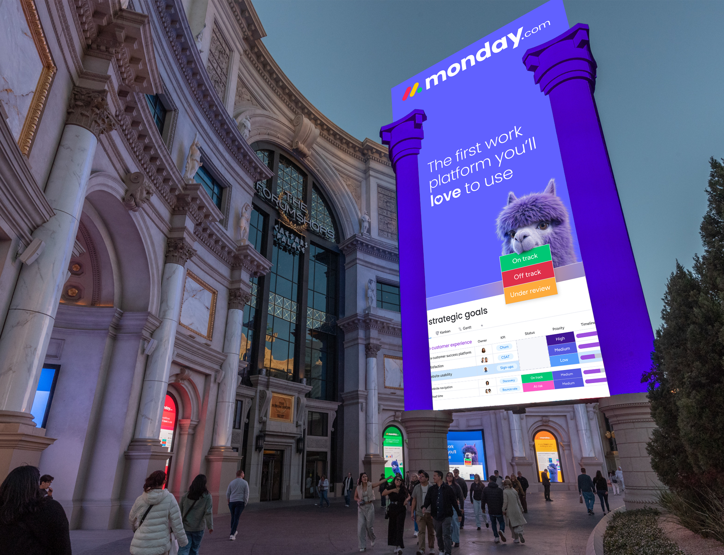 monday.com is a work management platform designed to help teams plan, track and manage their work. User research revealed that many users genuinely love using the platform, which became the foundation of the campaign. The campaign also marked the launch of the purple llama as a central brand character, created to stand out in public spaces and support long-term brand recognition.